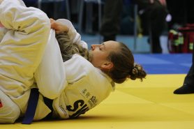 Maxine Thylin har via tre fina segrar tagit sig till VM-final i newaza -62kg. Thylin vann en spännande och poänglös semifinal över fransyskan Clara Dufau.